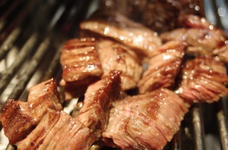 저는 열심히 부모님과 서연이에게 고기를 주기위해 열심히 구웠어요. 고기가 알맞게 익어 뒤집었는데, 불판무늬가 안창살에 찍혀 더 맛있게 보이더라고요. 알맞게 익은 일산 소고기 안창살을 부모님께 먼저 드렸어요. 부모님이 한번 드시고는 진짜 고기가 부드럽다고하시면서 아주 아주 열심히 드시더라고요.