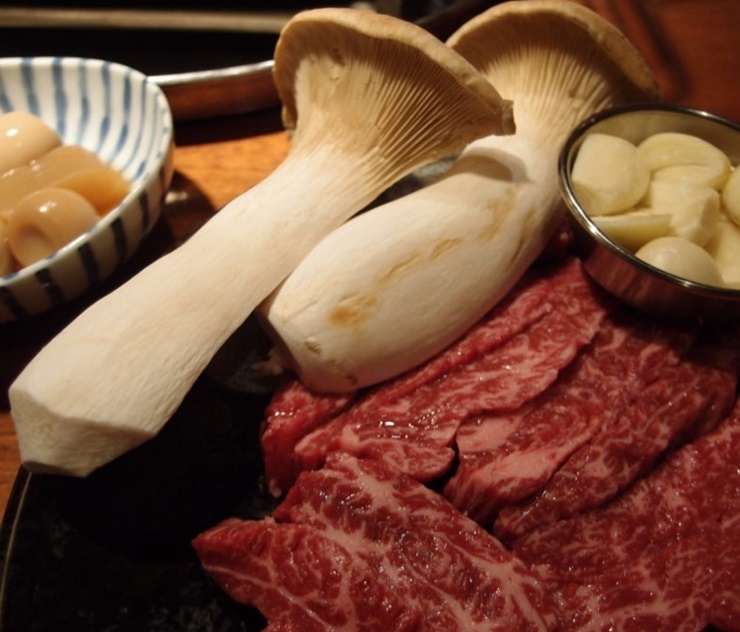 일반적인 안창살에 비해 고기 두깨감이 있더라고요. 전에 먹었던 명품삼겹살도 빛깔이 예술이었는데, 안창살 고기도 진짜 좋아보이죠? 버섯과 마늘도 구워먹을 수 있도록 함께 나왔어요. 직원분께서 먼저 고기를 올려주셨어요. 불이 쎄서 잘 구워주셔야한다고 말씀해주시고 가셨는데, 진짜 불이 쎄서 고기가 금방 익더라고요.