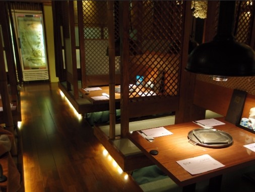 여기는 꼭 일본 선술집 같은 느낌이 물씬 풍기죠? 꼭 스시나 사케를 한잔해야할 것 같지만여기는 일산 소고기 맛집이랍니다. 안에는 이렇게 테이블이 나누어 있기도 하고 단체손님들이 앉을 수 있는 공간도 마련되어 있었어요.