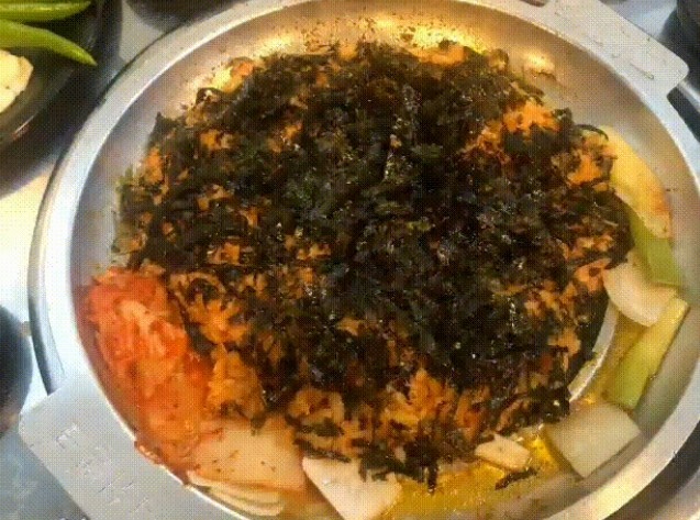 나인곱창의 볶음밥은 위에 김가루가 뿌려져 있어서 더 맛있어요. 저는 김치볶음밥을 먹을 때도 김을 싸서 먹는 스타일이거든요. 볶음밥은 좀 바닥에 눌어붙어야 제 맛이죠! 더구나 돌판에 볶음밥 더 맛있겠죠? 저와 동생은 김치를 볶음밥에 올려서 맛있게 먹었답니다. 구래동 나인곱창에서 맛있는 한우곱창의 맛을 느끼실 분은 한번 다녀오세요. 후회하지 않으실 거예요.