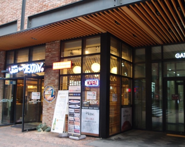 탄현 스시 무한리필에 가려면 제니스지하에 주차를 하고 GATE3쪽으로 올라오면 바로 초밥메이진에 올 수 있어요. 탄현초밥 앞에는 이렇게 입간판이 놓여있어서 이쪽을 지나가는 사람이 살펴볼 수 있게 되어 있어요.