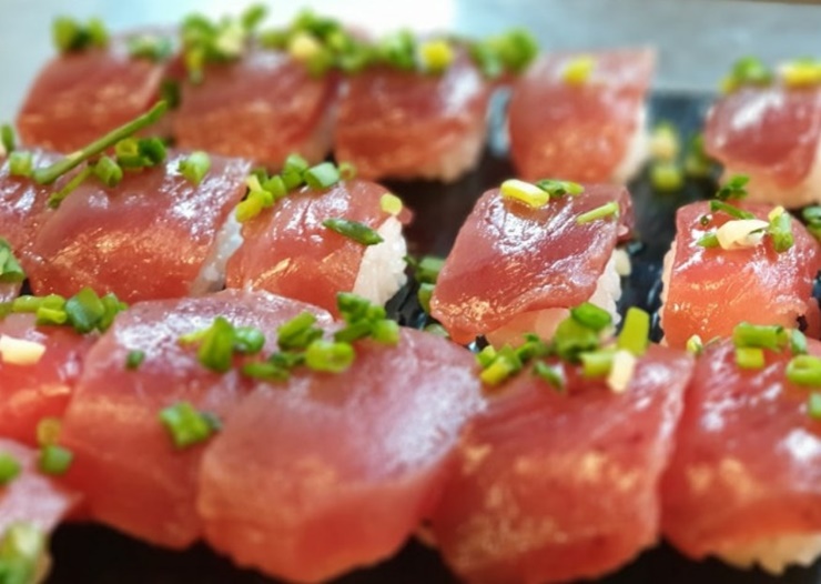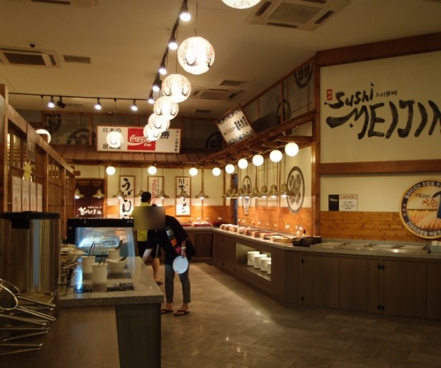 이제 맛있는 초밥부터 먹어볼까요? 제가 7시 30분 정도 밥을 먹으러 가서 초밥이 많이 없었는데, 초밥을 한번 가지고 가고 다시 갔을 때는 초밥이 다 추가가 되었더라고요.