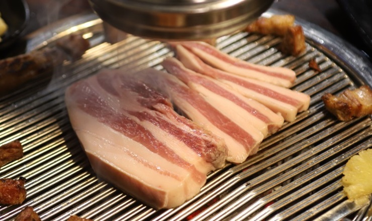 한눈에 보아도 고기가 너무 맛있어 보이죠? 고기가 통으로 나왔는데, 고기 상태가 너무 좋아보았어요. 직원분께서 손수 고기를 구워주셨어요. 고기를 구워주는 곳은 너무 좋아요. 가족끼리 왔을 때도 그렇지만 사람들과 함께 고깃집에 오면 이야기하면서 고기를 굽는 것이 신경 쓰이는 일이거든요.