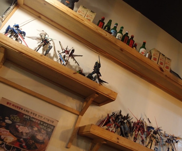 위쪽에는 이렇게 메뉴에 대해 나와있어요. 이미지로 되어 있어서 사진을 살펴보고 주문을 할 수 있어서 더 좋았어요. 건담이라고 해야 하나? 피겨를 좋아하시는지 이렇게 조립된 피겨도 있었어요. 저는 잘 모르는데, 건담인가요?