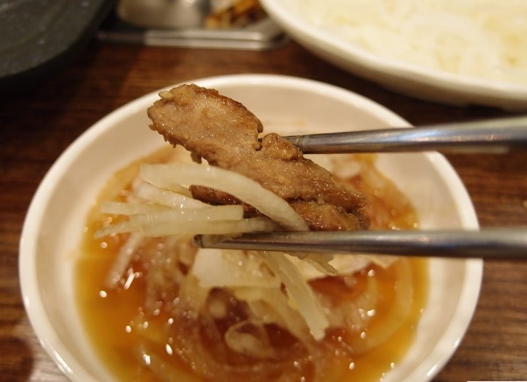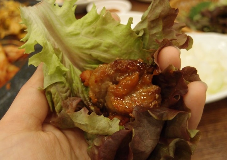 저희가 음식을 주문하고 나서 이렇게 기본찬들이 쭉 나왔어요. 콩나물과 김치, 고기를 싸먹을 수 있는 상추도 나왔고요. 고기와 곁들여 먹을 수 있는 양파는 간장소스에 절여서 나오는 것이 아니라 양파와 소스가 따로 나와서 기호에 맞게 먹을 수 있도록 되어 있었어요. 저는 고기 먹을 때 양파절임을 많이 먹기에 듬뿍 담아서 간장소스를 넣었답니다.