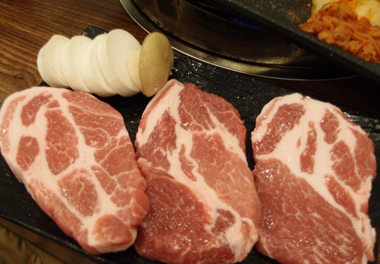 비계와 살코기의 조화롭고, 고기 색도 그렇고 윤기가 자르르 흐르는 고기를 열심히 구워봐 아야겠죠? 고기를 구웠을 때 불판 온도가 세서인지 고기도 금방 구워져서 오래 기다리지 않고 고기를 구워 먹을 수 있느니 좋더라고요.