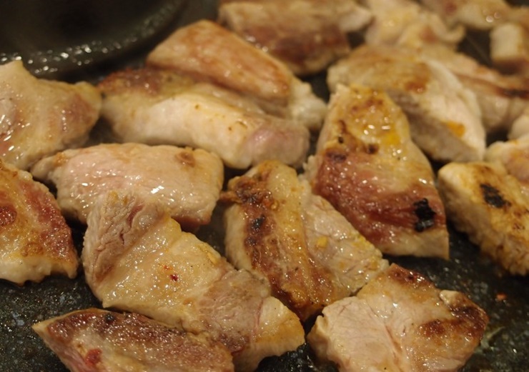 비계와 살코기의 조화롭고, 고기 색도 그렇고 윤기가 자르르 흐르는 고기를 열심히 구워봐 아야겠죠? 고기를 구웠을 때 불판 온도가 세서인지 고기도 금방 구워져서 오래 기다리지 않고 고기를 구워 먹을 수 있느니 좋더라고요.