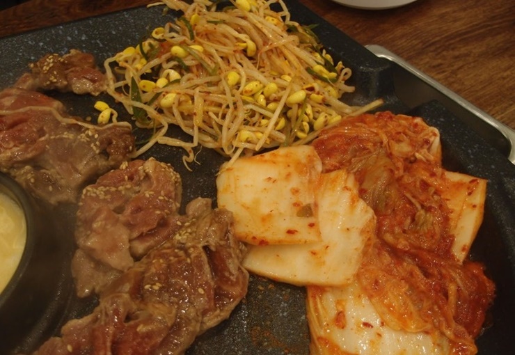 이렇게 불판에 김치랑 콩나물을 올려서 먹는 것은 오랜만이에요. 선생님도 이렇게 먹는 거 오랜만이라고 하면서 무척 반가워하더라고요. 아라는 콩나물을 좋아하는데, 콩나물 한번 먹더니 콩나물에서 갈비 맛이 난다고 하면서 맛있다고 하더라고요.