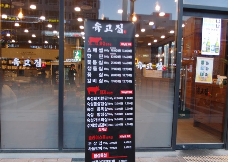 가게 안으로 들어갔을 때 가장 먼저 눈에 들어왔던 것은 육고집이라고 크게 써 있는 곳에 고기들이 보관되어 있는 쇼케이스가 있었는 에, 사장님께서 직접 고기를 손질하고 계셨어요. 처음에는 고기 손질하시는 분인 줄 알았는데, 나중에 알고 보니 구래동 고깃집 사장님이시더라고요.