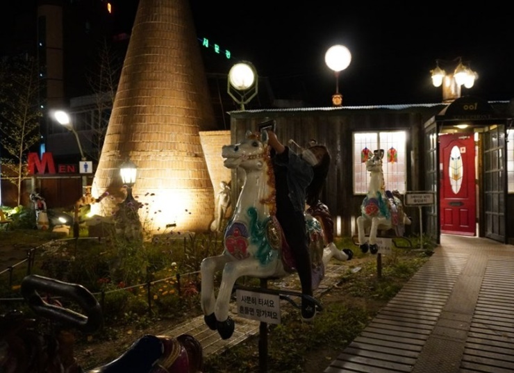 이곳은 화장실 앞인데, 회전목마들이 눈길을 끕니다. 막 흔들지만 앉는다면 앉아서 사진도 찍을 수 있어요.