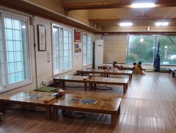 신방산식당은 이렇게 앉아서 먹을 수 있는 좌식 테이블과 의자에 앉아서 먹을 수 있는 공간으로 나누어 있는데요. 밖에서 보았던 것보다 생각보다 넓은 편이더라고요. 테이블마다 공간이 여유가 있고, 여러 명을 수용할 수 있게 되어 있어 가족단위나 모임에서 와도 공간이 부족하지 않을 것 같았어요.