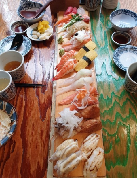 이렇게 혼자 와서 먹을 수 있게 요리사 분 앞에 이렇게 자리가 있네~~ 그동안 왜 몰랐을까??;;;;; 앞에서 보면 초밥을 어떻게 만들 수 있는지도 볼 수 있어 좋네. 다음에 서연이랑 오면 여기 앉아봐야겠다. 초밥 만드는 모습을 보면 서연이가 신기해하고 재미있어할 것 같다.