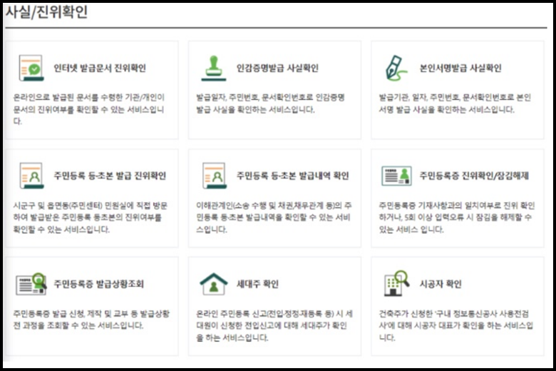 민원접수가 되면, 세대주에게 신청 완료 문자가 전송됩니다. 이는 정부 24를 통해 신청 내용 사실, 진위를 확인하라는 겁니다. 진위 확인은 정부 24 서비스 사실/진위 확인 세대주 확인에서 하실 수 있습니다. 온라인 세대주 변경의 진위 확인은 성명과 주민등록번호를 입력한 후 공동 인증서나 간편 인증으로 진행 가능합니다.
